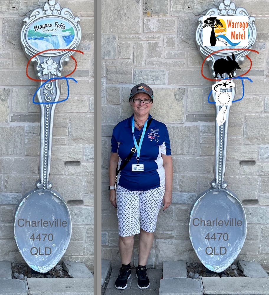 To confirm detailed requirements for the big spoon sculpture, Maree and the Natureworks team exchanged emails across the globe (while Maree and Guy were still on holiday!). Maree annotated an image of the spoon she’d seen at Niagara Falls, showing how she would like it to be customised. She and Guy wanted the spoon sculpture to represent the motel and the local Charleville area.