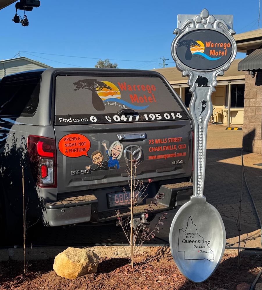 The resulting Big Souvenir Spoon sculpture is unique to the motel and symbolises its Charleville location. It stands proudly at the front of the motel, drawing attention and adding to the area’s quirky collection of Big Things.